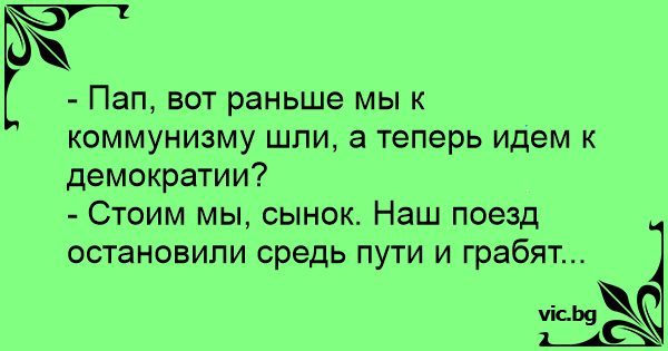 - Пап, вот раньше мы к коммунизму шли, а теперь идем к демократии?