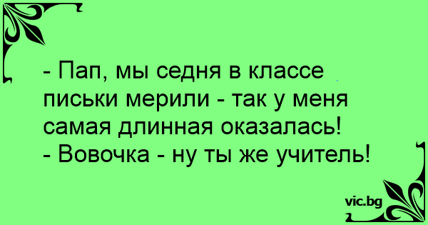 - Пап, мы седня в классе письки мерили - так у меня самая длинная оказалась!
