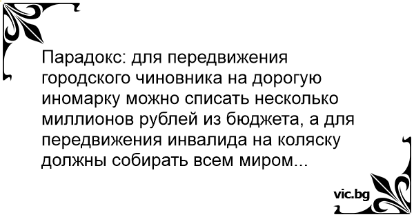 Парадокс: для передвижения городского чиновника на дорогую иномарку можно списать несколько миллионов рублей из бюджета, а для передвижения инвалида на коляску должны собирать всем миром...