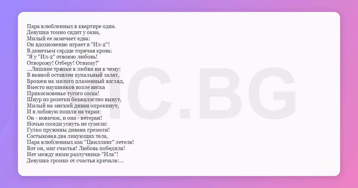Нет между ними разлучника-"Ила"!