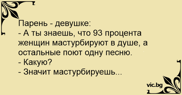 - А ты знаешь, что 93 процента женщин мастурбируют в душе, а остальные поют одну песню.