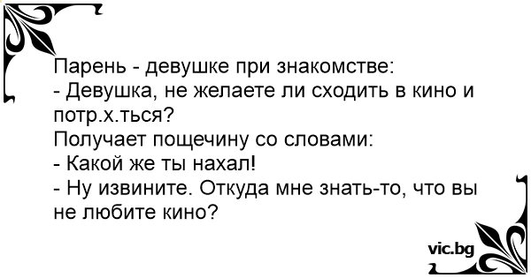 - Девушка, не желаете ли сходить в кино и потр.х.ться?