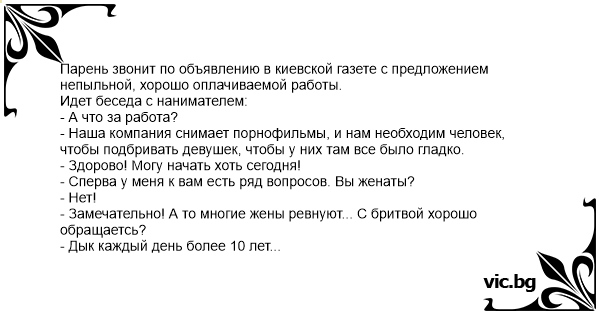 Парень звонит по объявлению в киевской газете с предложением непыльной, хорошо оплачиваемой работы.