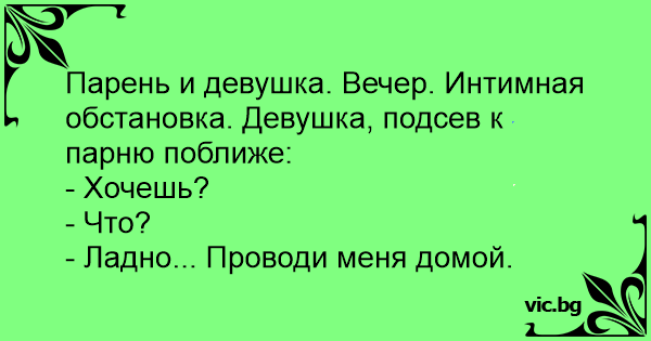 Парень и девушка. Вечер. Интимная обстановка. Девушка, подсев к парню поближе: