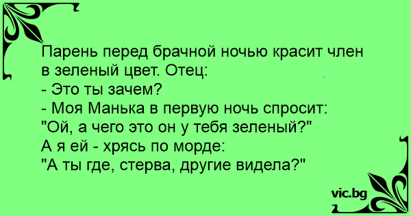 Парень перед брачной ночью красит члeн в зеленый цвет. Отец: