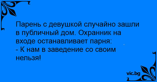 Парень с девушкой случайно зашли в публичный дом. Охранник на входе останавливает парня: