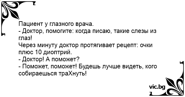 - Доктор, помогите: когда писаю, такие слезы из глаз!