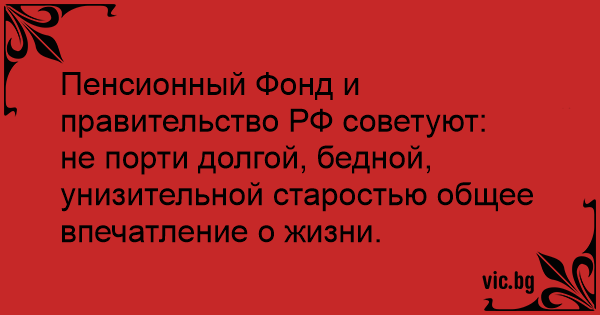 Пенсионный Фонд и правительство РФ советуют:<br />не порти долгой, бедной, унизительной старостью общее впечатление о жизни.