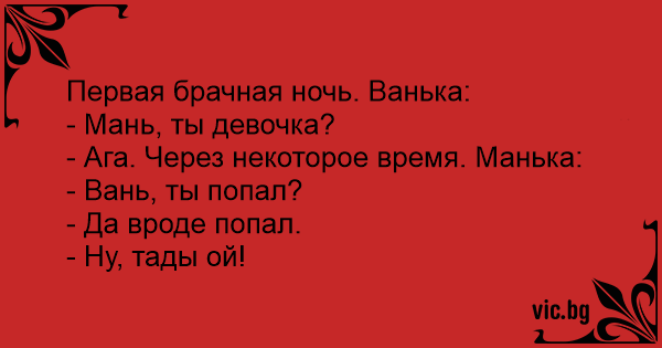 Первая брачная ночь. Ванька: