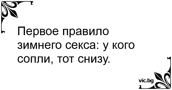 Первое правило зимнего cекcа: у кого сопли, тот снизу.