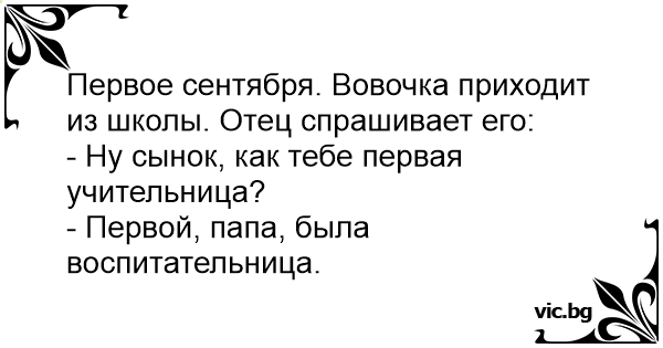 Первое сентября. Вовочка приходит из школы. Отец спрашивает его: