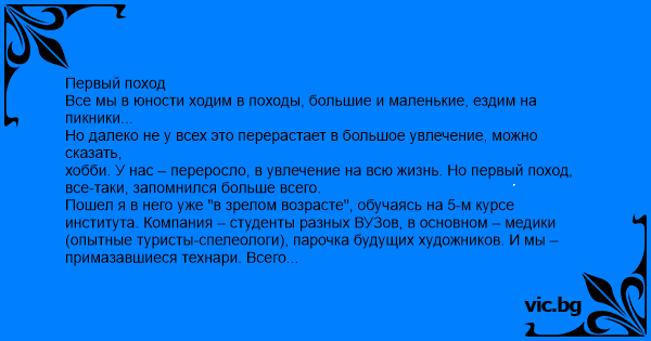 Первый поход Все мы в юности ходим в походы, большие и маленькие, ездим на пикники...