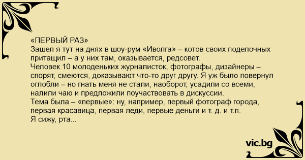 «ПЕРВЫЙ РАЗ» Зашел я тут на днях в шоу-рум «Иволга» – котов своих поделочных притащил – а у них там, оказывается, редсовет.