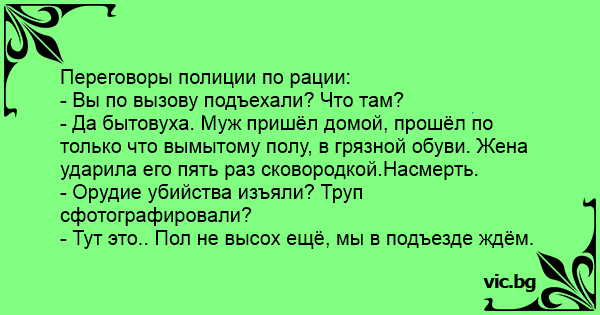 - Да бытовуха. Муж пришёл домой, прошёл по только что вымытому полу, в грязной обуви. Жена ударила его пять раз сковородкой.Насмерть.