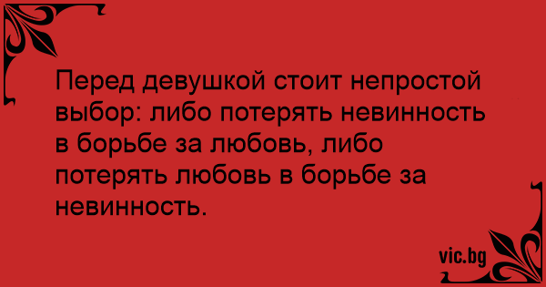 Перед девушкой стоит непростой выбор: либо потерять невинность в борьбе за любовь, либо потерять любовь в борьбе за невинность.