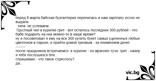 перед 8 марта бабская бухгалтерия перепилась и нам зарплату ессно не выдали.