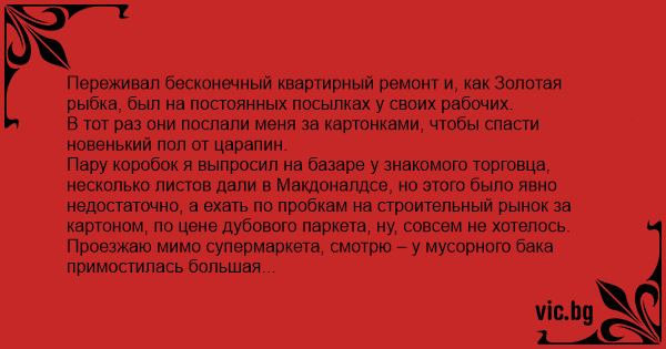 В тот раз они послали меня за картонками, чтобы спасти новенький пол от царапин.