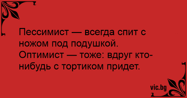 Оптимист — тоже: вдруг кто-нибудь с тортиком придет.