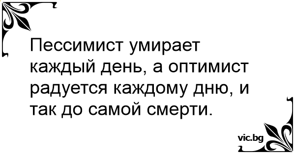 Пессимист умирает каждый день, а оптимист радуется каждому дню, и так до самой смерти.