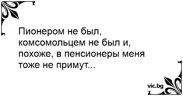 Пионером не был, комсомольцем не был и, похоже, в пенсионеры меня тоже не примут...