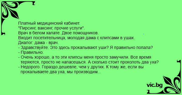 - Здравствуйте. Это здесь прокалывают уши? Я правильно попала?