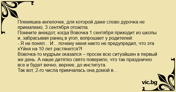 Помните анекдот, когда Вовочка 1 сентября приходит из школы и, забрасывая ранец в угол, вопрошает у родителей: