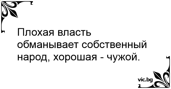 Плохая власть обманывает собственный народ, хорошая - чужой.