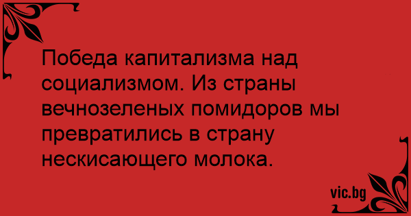 Победа капитализма над социализмом. Из страны вечнозеленых помидоров мы превратились в страну нескисающего молока.