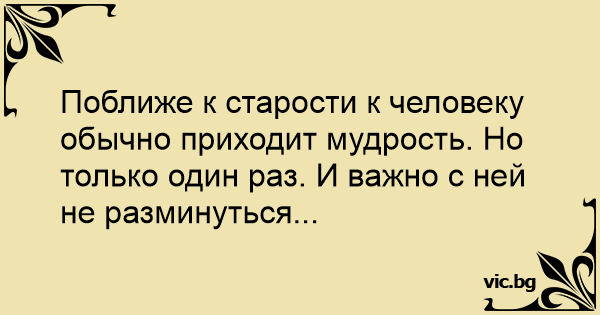 Поближе к старости к человеку обычно приходит мудрость. Но только один раз. И важно с ней не разминуться...