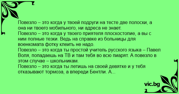 Повезло – это когда ты простой учитель русского языка – Павел Воля, попадаешь на ТВ и там тебя во всю пиарят. А повезло в этом случае – школьникам.