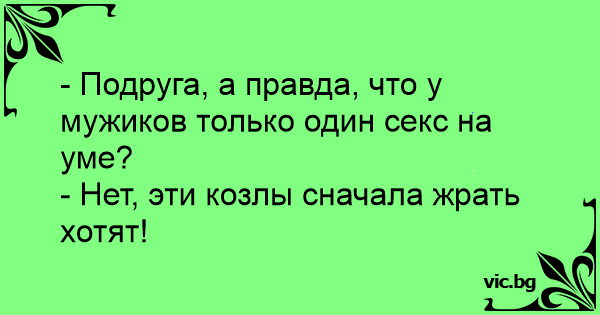 - Подруга, а правда, что у мужиков только один cekc на уме?