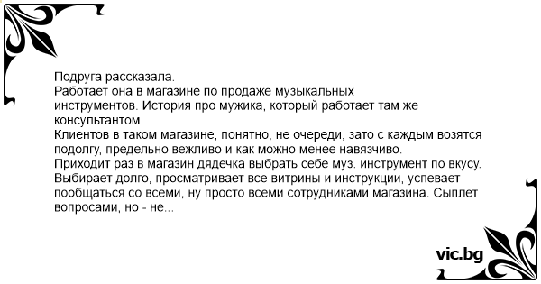 Приходит раз в магазин дядечка выбрать себе муз. инструмент по вкусу.