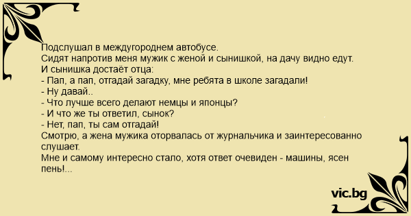 Подслушал в междугороднем автобусе.