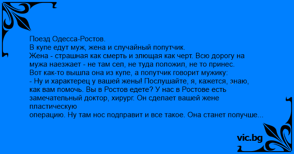 Вот как-то вышла она из купе, а попутчик говорит мужику: