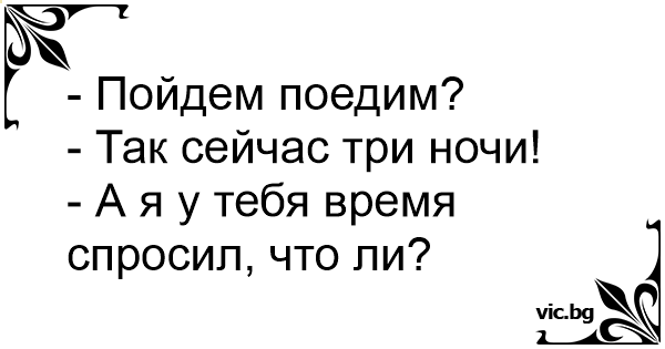 - Да ходим да хапнем? - Три часа посред нощ е! - Не те питам за часа ?!
