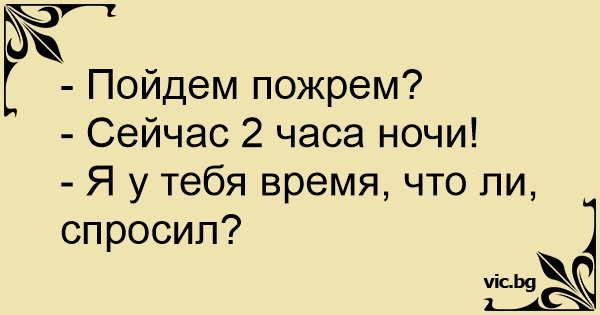 - Да ходим да ядем? - Два часа през ноща е! - Аз за часа ли попитах?!