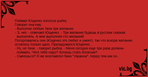- Э, нет, - отвечает Ющенко. - Три желания будешь в русских сказках
