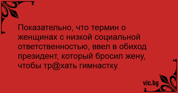 Показательно, что термин о женщинах с низкой социальной ответственностью, ввел в обиход президент, который бросил жену, чтобы тр@хать гимнастку.