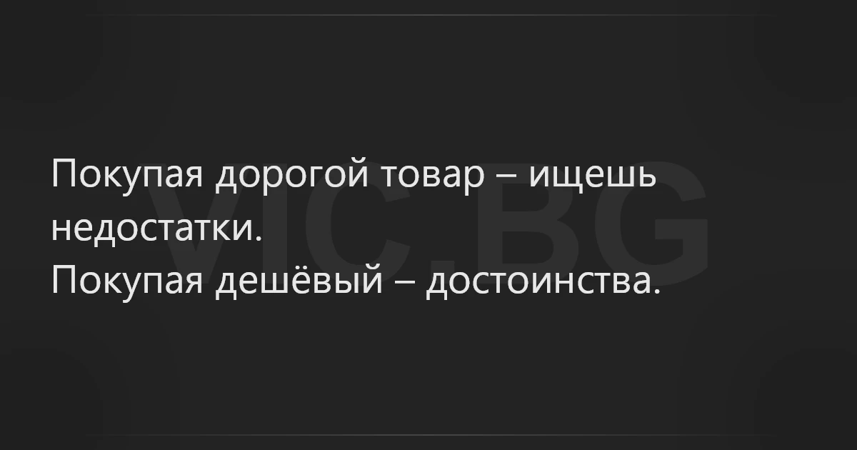 Покупая дорогой товар – ищешь недостатки. Покупая дешёвый – достоинства.