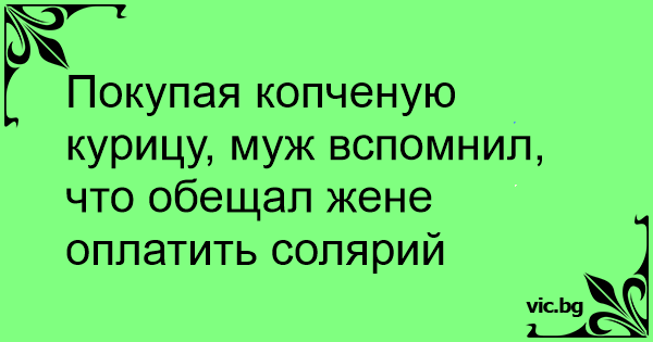 Покупая копченую курицу, муж вспомнил, что обещал жене оплатить солярий