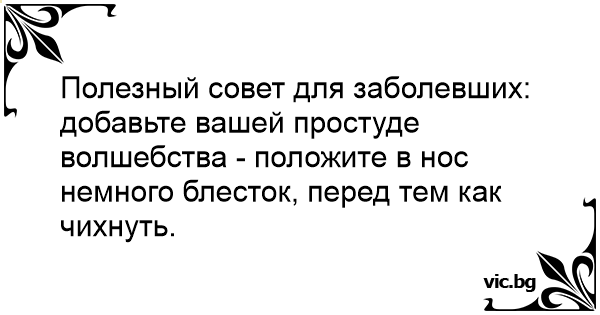 добавьте вашей простуде волшебства - положите в нос немного блесток, перед тем как чихнуть.
