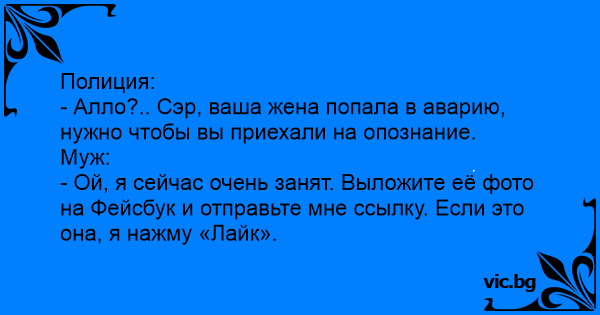 - Алло?.. Сэр, ваша жена попала в аварию, нужно чтобы вы приехали на опознание.