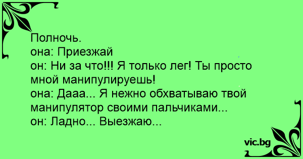 он: Ни за что!!! Я только лег! Ты просто мной манипулируешь!