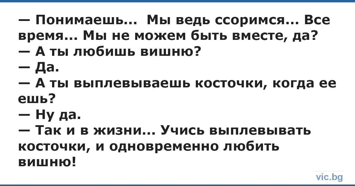 — Так и в жизни... Учись выплевывать косточки, и одновременно любить вишню!