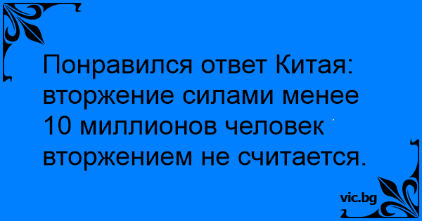 Понравился ответ Китая: вторжение силами менее 10 миллионов человек вторжением не считается.