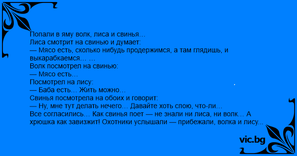Попали в яму волк, лиса и свинья…