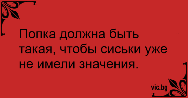 Попка должна быть такая, чтобы сиськи уже не имели значения.