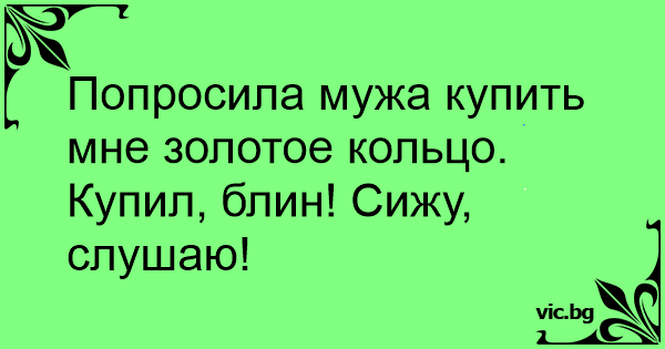 Попросила мужа купить мне золотое кольцо.<br />Купил, блин! Сижу, слушаю!