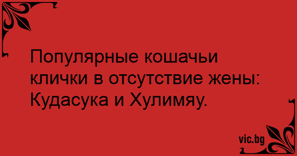 Популярные кошачьи клички в отсутствие жены: Кудасука и Хулимяу.
