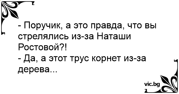 - Поручик, а это правда, что вы стрелялись из-за Наташи Ростовой?!